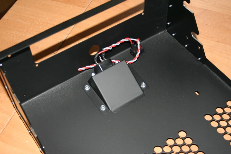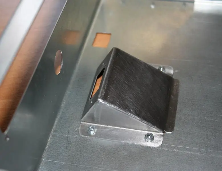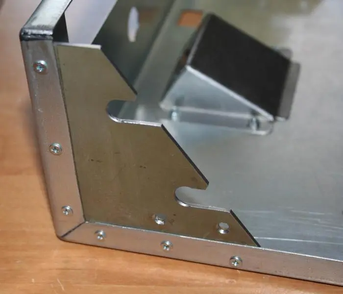 Сегодня доделал все элементы нижней части корпуса и провёл контрольную сборку. Изготовил передние косынки с пазами замков верхней части, из стали 2мм. Задние косынки согнул из стали 0,8мм, приклепал к ним закладные элементы из 3мм стали и нарезал в них резьбу для винтов крепления верхней части корпуса. Согнул и спаял карман для разъёма питания из стали 0,8мм.