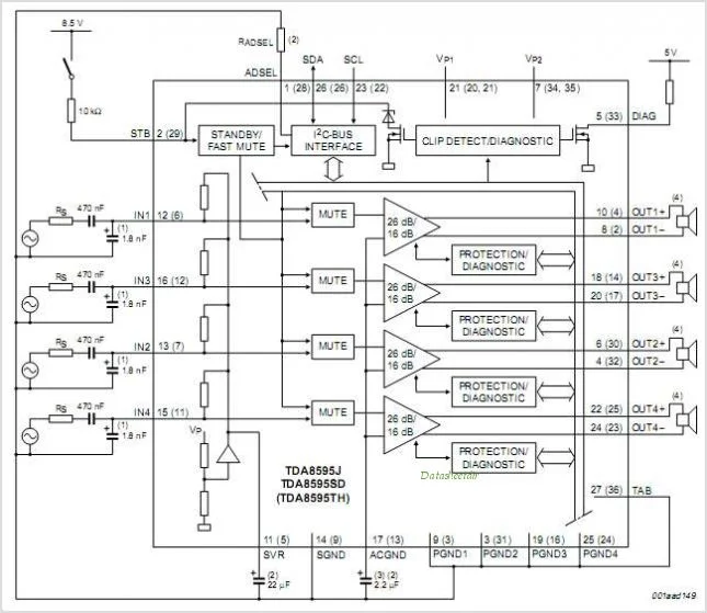 Доброго времени суток всем. Имеется в наличии микросхема TDA8588J. Как на основе этой микросхемы собрать усилитель? Поиск во всемирной паутине про неё практически ни чего не дал. Какие детали понадобятся и какие ноги этой микросхемы будут задействованы?