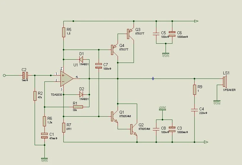Доброго времени суток. Нужна небольшая консультация, а т.е. : собрал вот такую схемку на TDA 2030а. Работает , но только хотелось бы знать точно, какая чувствительность у данного усилка. Буду делать темброблок к этой схеме. Ещё хотелось бы знать, можно ли заменять кт 818 и 819, на кт 805 и 837 ? И если всё таки поставить кт 805 и кт 837, то как это отразится на качестве? Питание 32 в.