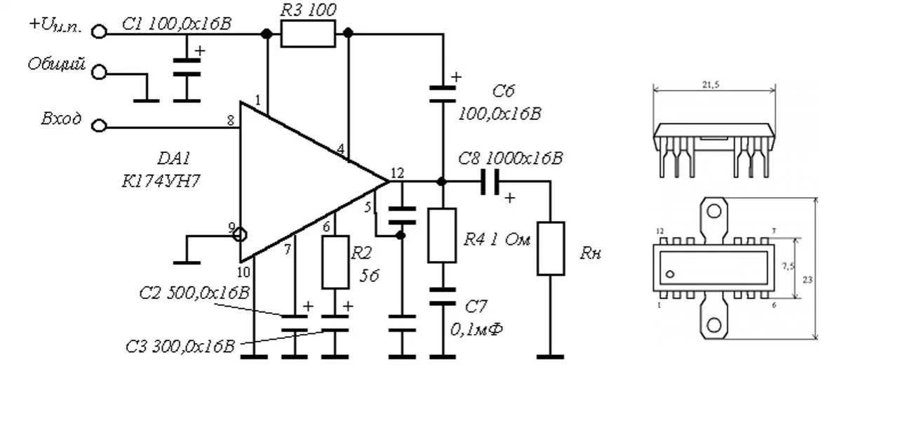 Здраствуйте подскажите усилитель на двух схемах К174УН7