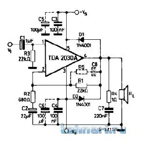 История такая: подтолкнула меня жизнь на необходимость сконструировать усилитель мощности на микросхеме TDA2030а (дёшево и сурово), нашёл схемы, прочитал инструкции по усилителю, кучу схем и прочее, но, так как мощей в электронике не густо, столкнулся с проблемой выбора элементов электрической цепи.