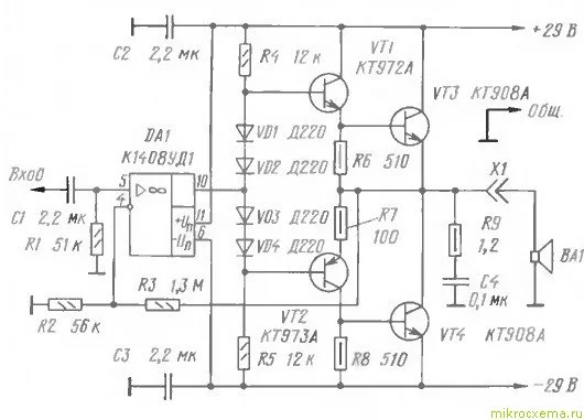 Данная схема подойдет для довольно мощного самодельного усилителя звуковой частоты.