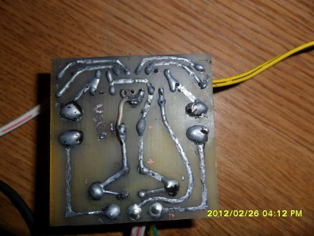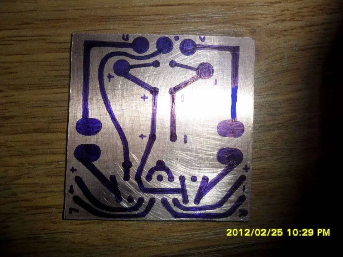 Фото попозже будут...цифровик занят) Трассировку рисовал зеркально...должно было работать,лично мое мнение это копец микросхеме...т.к в первый раз я же её неправильно установил,и видимо её замкнуло или еще что то в этом роде) БП у меня от китайского радио...5-12 v где то напряжение...ну думаю новую микросхемку купить придется, от 90 рублей не обеднею)
