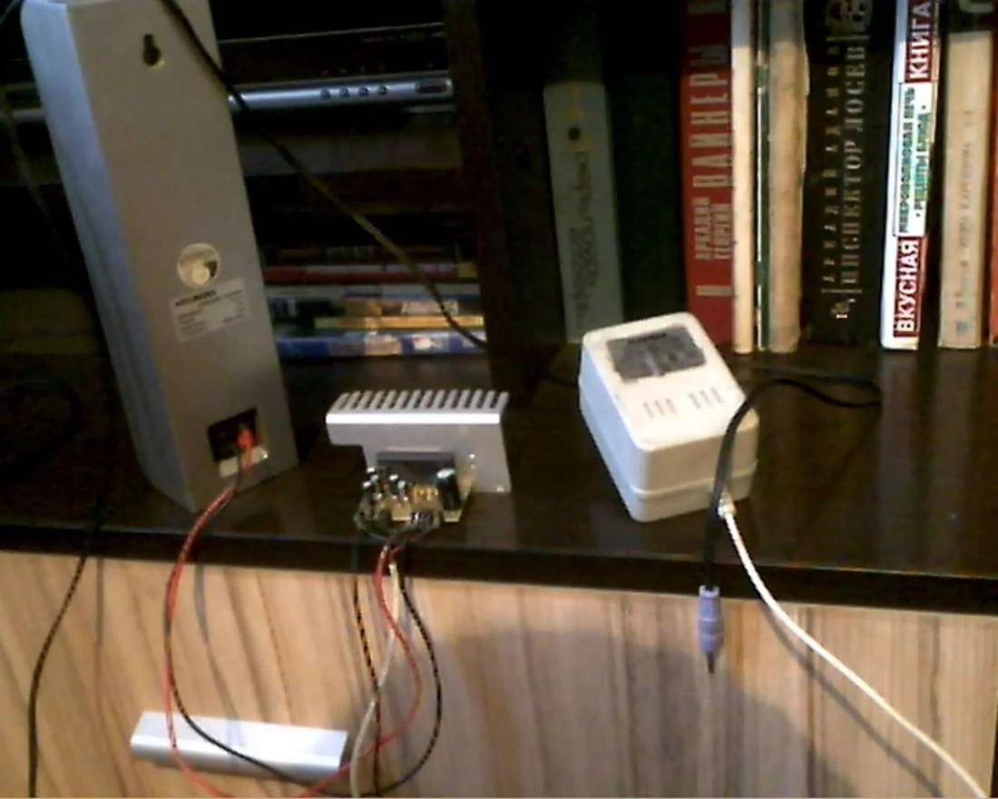 А полностью всё в сборе устройство можно увидеть, с колонками, блоком питания, источником сигнала, и плату желательно всю со стороны дорожек и со стороны деталей, и чтобы провода не клубком были, а что бы было видно куда какой идёт