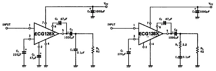 Первая схема лучше имхо. Ко второму выводу подключается конденсатор встроенного шумоподавителя. Как гласит даташит: "...эффективно снижает шум от источника питания"