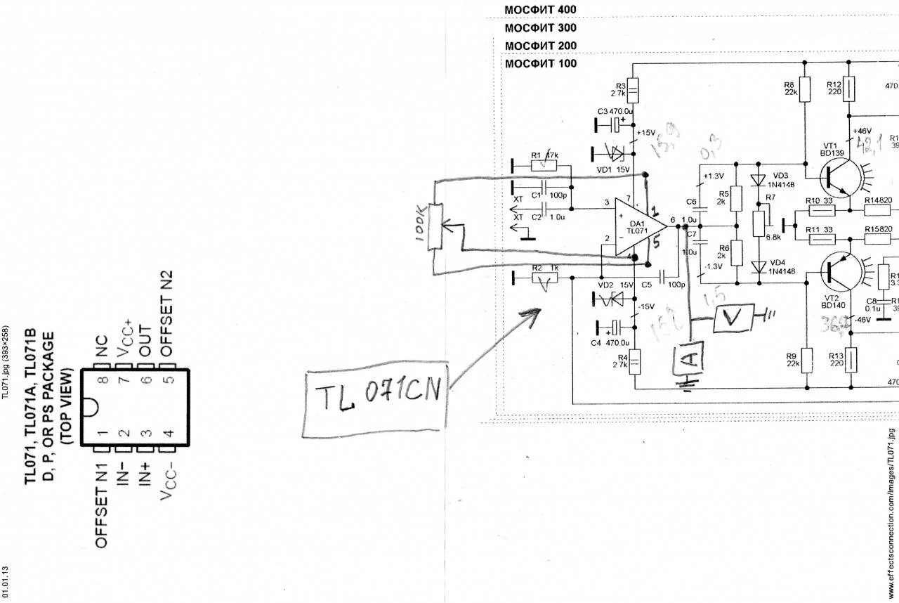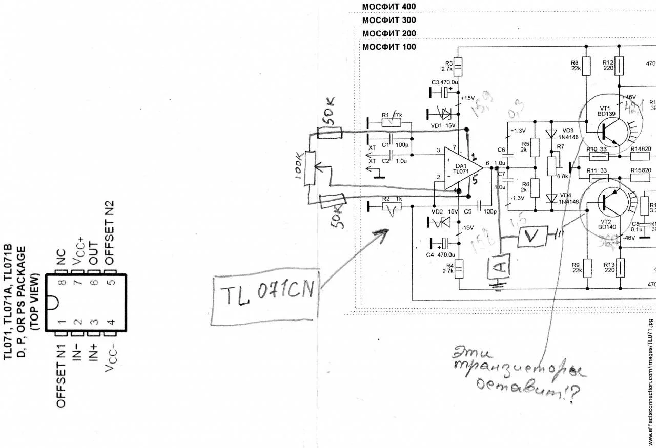 в дата щите на ТЛ071 есть информация по регулировке ноля, ты сделал правильно, отличная микросхема, жаль что у ТЛ072, 074 нет таких регулировок я тогда-бы только ими и пользовался
