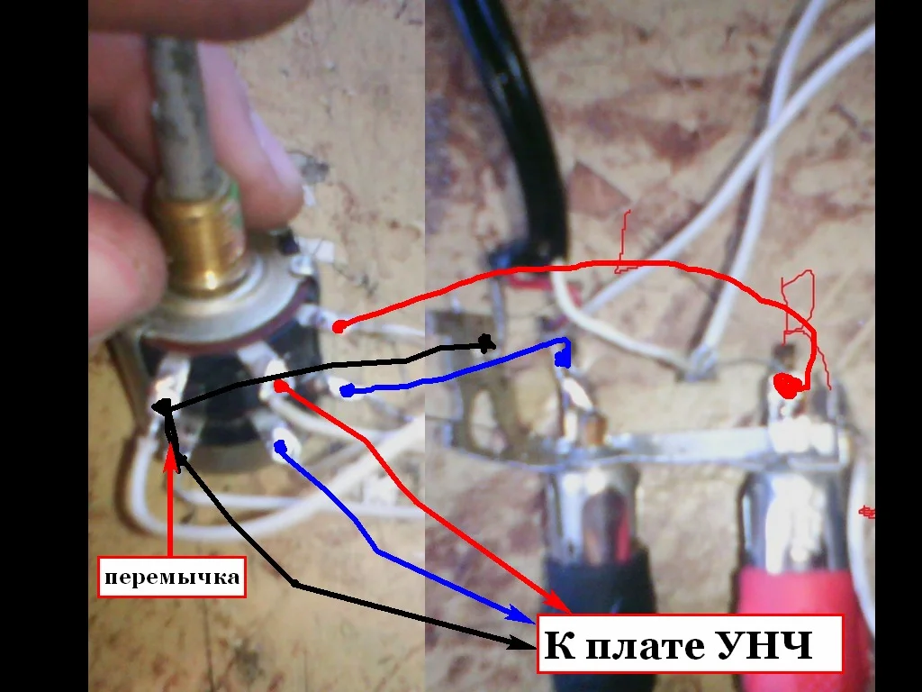 с тюльпана на крайнюю правую ногу переменника, от средней ноги переменника на вход платы УНЧ....... Обе (верхняя нижняя) левые ноги переменника это земля (общая) ставишь там перемычку соединяя и верхнюю и нижню, и цепляешь туда землю от тюльпанов и УНЧ....