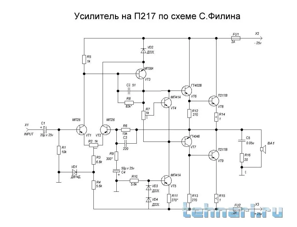 Вобщем, пока идет заказанный мною осциллограф, попробую смакетировать схему С.Филина из журнала "В помощь радиолюбителю № 91". Вроде как это максимум, что можно выжать из транзисторов серии П213-217. Тем более, что остался двуполярный импульсный БП от TDA 2050, как раз на 25В.