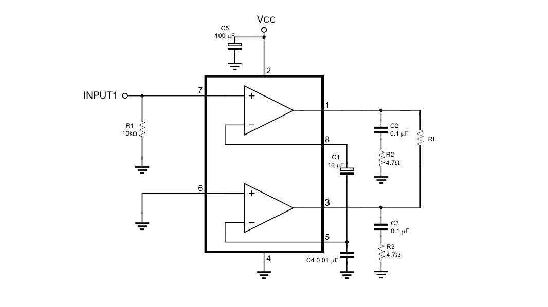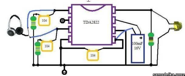 Усилитель на схеме TDA 2822