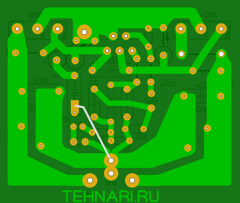 Цепь цобеля (R9, C8) повесишь на вых. клеммы, на плату не влез.