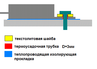 На болт М3 надеваем отрезок термоусадочной трубки. Чуть прогреваем болт, чтобы трубка уселась на нем. Такой "изолированный" болт легко помещается в отверстии фланца.