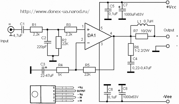 Всем доброго времяни уважаемые форумчане.Собрал на выходых данный усилитель,схема прилогается ниже.Позарился на хорошую отдачу на Н/Ч.На низких частотах звук и вправду обрадовал,сам не ожидал долбит как надо,но у меня такое ощущение,что высоких не хватает?Может это конечно из за акустики(автодины,только не надо говорить,что это г...о,я сам знаю),но мне кажется они скорее по низам будут хуже,высоких у них по моему не отнять.К Eltax подключать боюсь,было дело,кое чего от 7294 сгорело.Планируется использовать этот усилитель для компа,с этим г...ом.Может у кого есть какие мысли по этому поводу,в смысле В/Ч?Имеется ввиду замена каких то элементов?