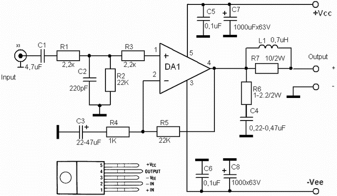 • Дополнительные транзисторы вносят свою нелинейность, поэтому общие искажения по сравнению с просто микросхемой возрастут.
