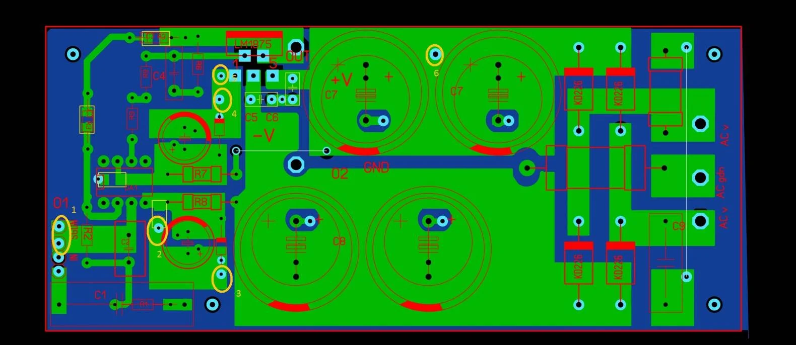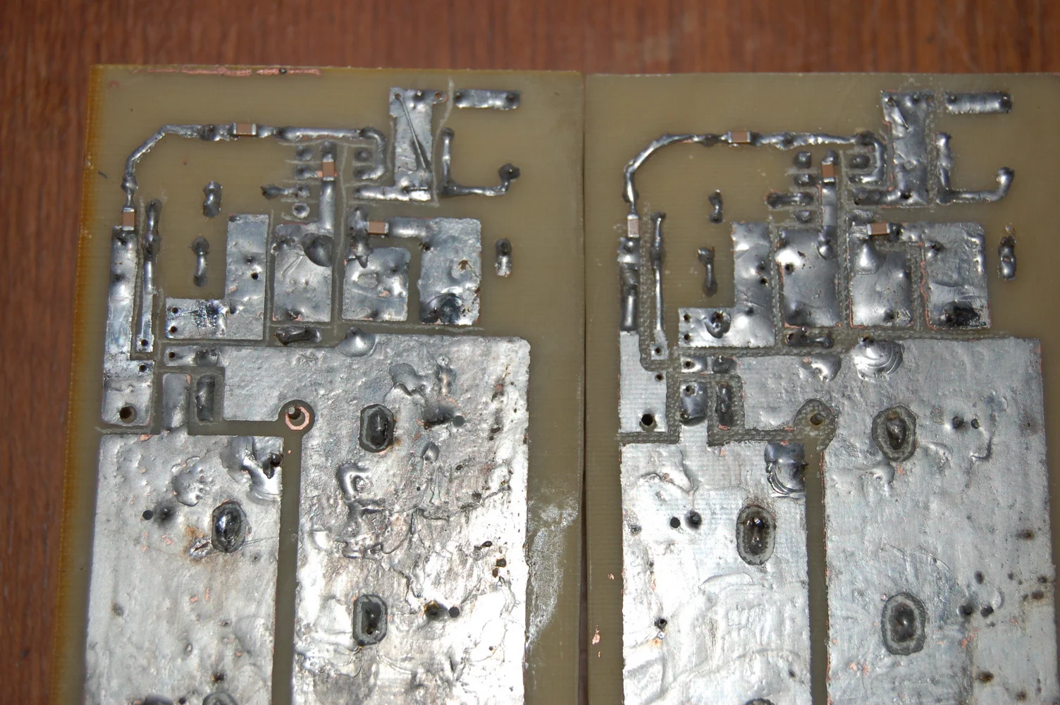 точки 3/4 это под разные посадочные места стабилитронов. можно и в качестве переходов сделать.смд конденсаторы емкость не нормировал,какие приличные есть такие и ставь. от 6до 100нф(0,1мк).верх только потом защитным лаком покрой.Я обычно сразу покрываю,закрыв нужные места скотчем, бумагой или даже гвоздики оконными для штапика в нужные дырки вставляю,потом вынул и зачищать не надо.Хотя в вашем случае можно акриловым лаком защитным покрыть.