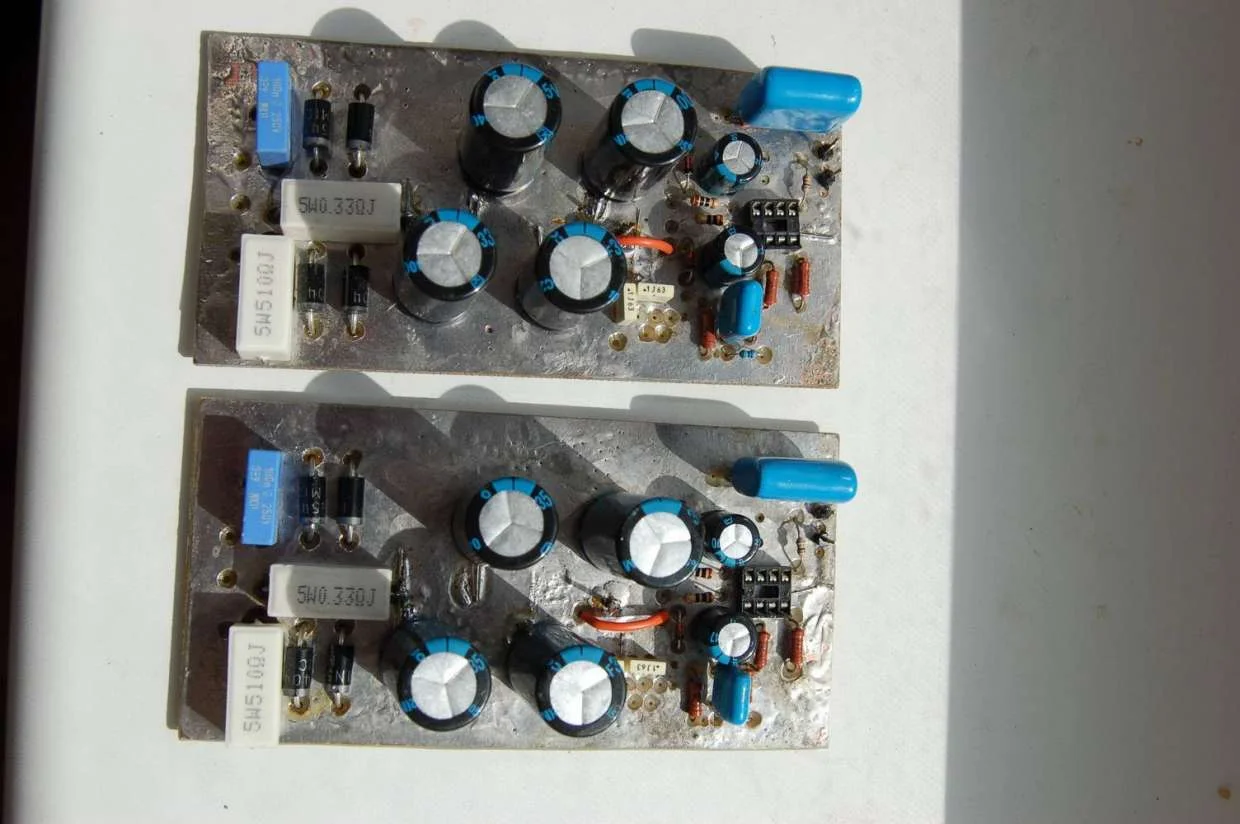 Так ведь там такое же напряжение на питании операционника как и для питания LM1875, я ведь померял на обоих платах , правда микросхемы еще на платы не ставил.Не рискнул. На 4-ю и 7-ю ноги TL071 подается питание напрямую через резисторы R7 . R8 я их поставил по 680 Ом. Стабилитроны что ли не рабочие ...