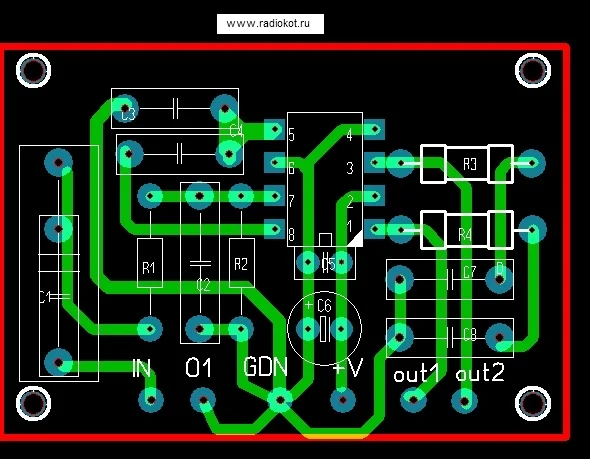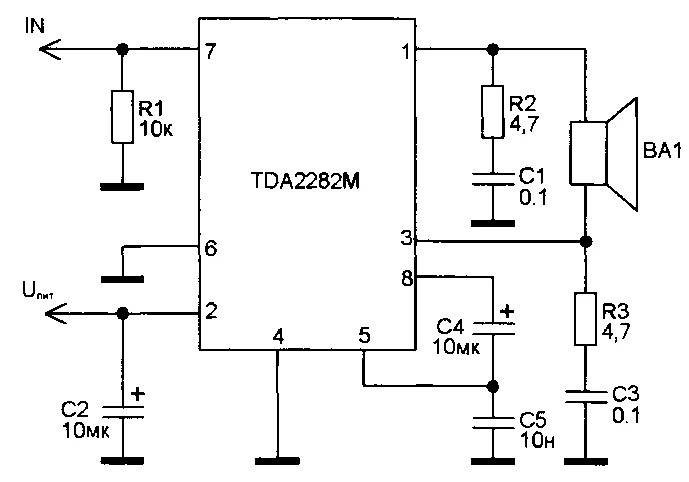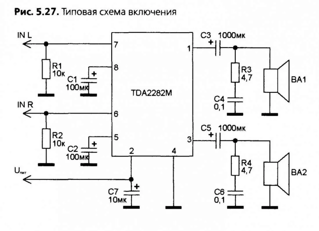 скиньте пожалуйста схему и печатную плату для усилителя на микросхеме тда 2822(тда2822m) для включения в мостовом режиме!!