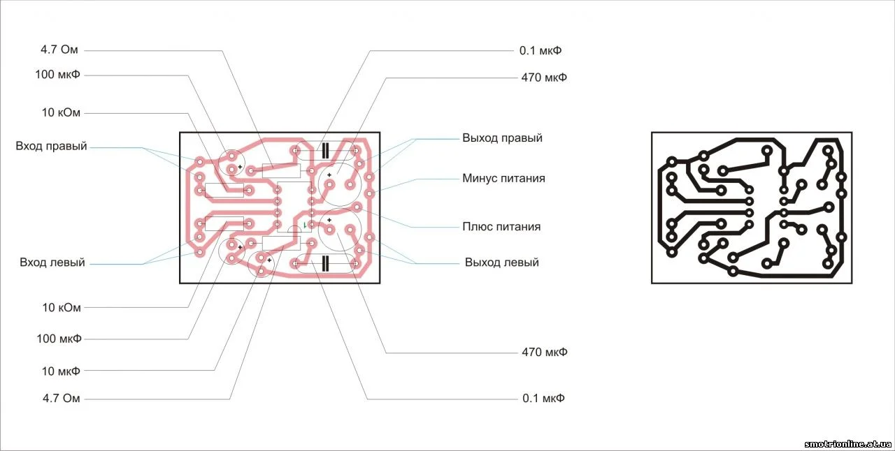 Дак какие проблемы? то . просто делаеш печатку под 2 микросхемы и соеденяеш только питание и входный сигнал. вот и все. Сам кстати с етой микры начинал. Правда делал навесом \_