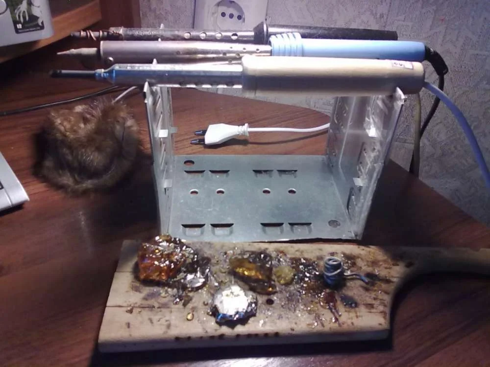 P.S. там есть фотка моих паяльников =)) подставку под них сделал из части старого корпуса, которого выкинул. это часть, где крепятся СД приводы =) кстате соовсем не греется =) почти ночь паял =)