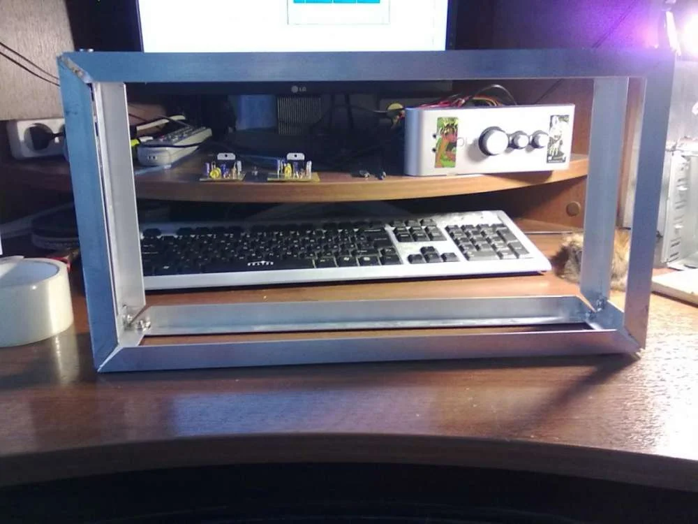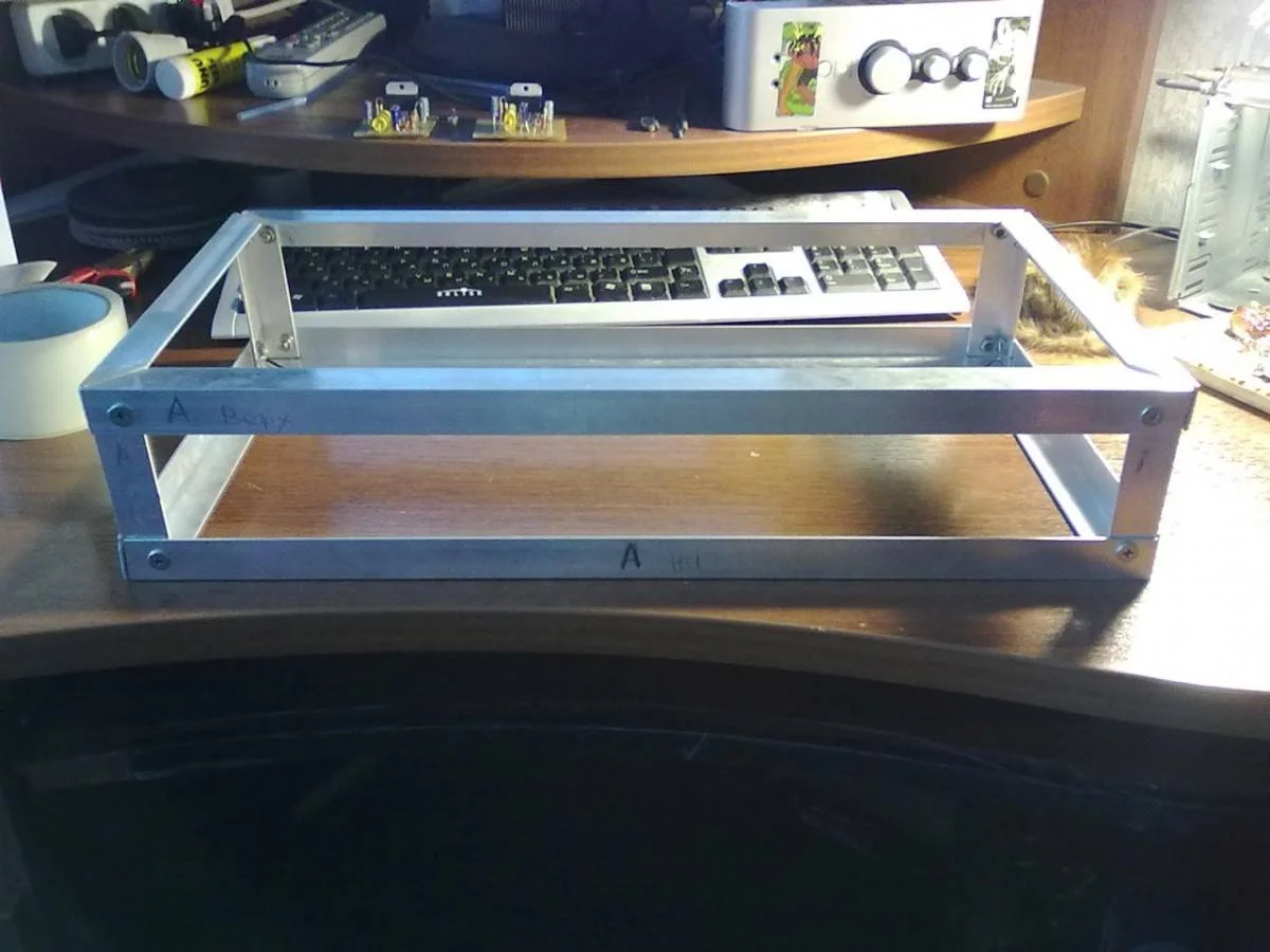 получилось довольно мило, сегодня осталось немного доработать, просверлить дырки и усё, корпус собран) эдак я долго всё делаю, но ничего =) задумал что усилитель будет стоять на двух углах прикрученых к стенке, но если сзади будут выходы, стоять нормально он на них не сможет, по этому все выходы будут в левой стенке