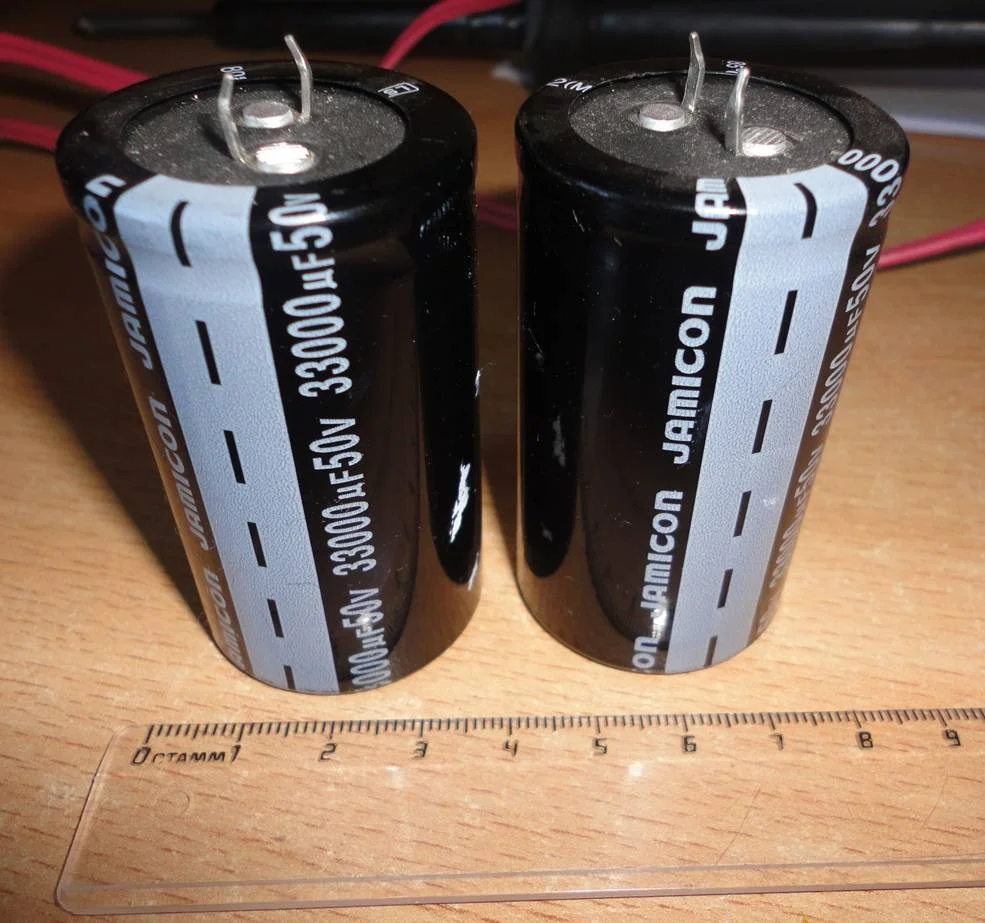вот электролитические кондеры которые я купил, не помню уже сколько стоили, емкость 33 000 мкФ на 50 В :)