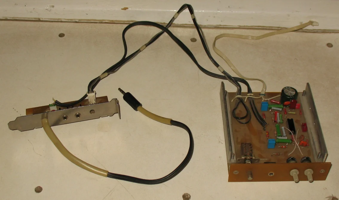 Он устанавливался внутри компьютера в корпусе АТ, в отсек 3.5" дисковода. Прямо под ним стоял усилитель Гумели закрепленный вместе с выпрямителем на трансформаторе прикрученном к дну корпуса.