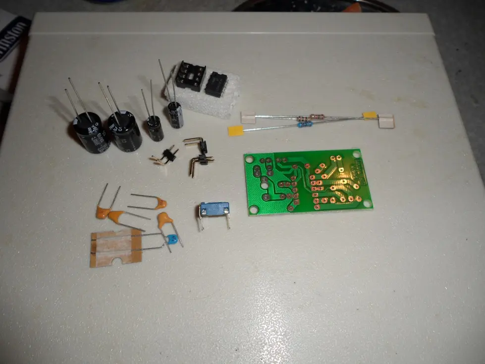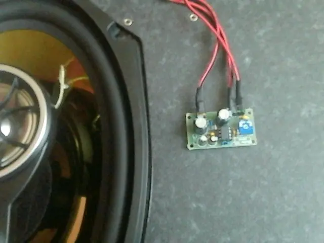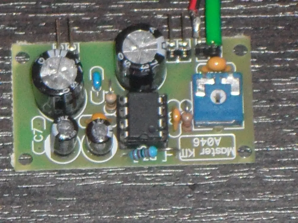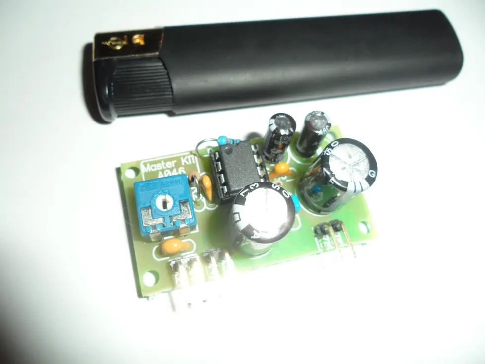 Усилитель НЧ 0,7Вт. Выполнен на микросхеме LM 386 / Эта ИМС представляет собой УНЧ класса В. Максимальная мощность 0,7 Вт на нагрузке 8 Ом. Почему выбор был сделан на него ,,так как у него маленькие габариты и питания 400 мА , то что нужно.... меня просил сын для машинки на радио управлении,, говорит круто будет она едет и радио или с МР3 песни.. Короче поехал в магазин там ее нет и вдруг наткнулся на набор ,,, готовый к сборке,, прикинул 240 р не дорого... а если покупать отдельно да и еще дорога до радиорынка ..выйдет дороже.. Да и плюс большой не надо с платой заморачиваться.. Ну вот когда все было спаяно ему не терпится ,, давай подключать он мне притащил динамик от авто... трехполосник на нем написано 300 W ну это китайских ,,а так думаю 8 W есть . Когда включили я абалдел ,чистый звук ,,басы,, между песнями тишина полная .... Кричит не надо в машину давай для компа.. На кухне в половину громкости включили ,, бабушка из комнаты кричит ,,, тише ,,, тише,, На полную плясать можно смело.. Чесно был удивлен.... Работал от аккумулятора 12 вольт от радиоупр..самолета 1800 мА.ч. час гоняли играл и пел .. потом включили адаптер 500 мА все замечательно.. Ну вот наверно и все ,,,,,, Да совсем забыл схема по даташиту LM 386 точно такая.. Так что дерзайте..