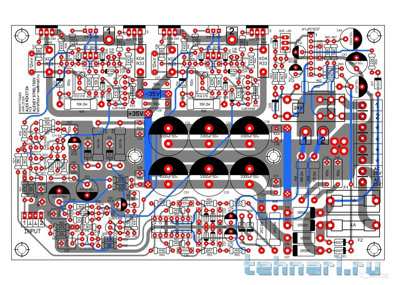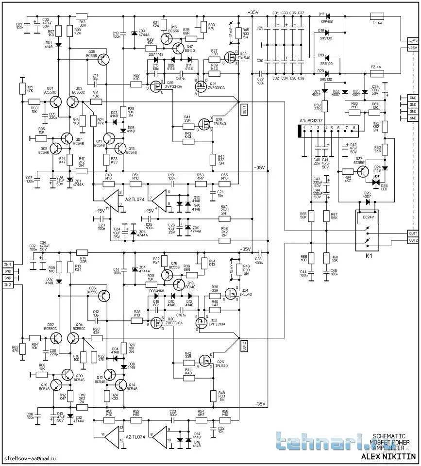 Вот, вчера принесли в коробке кучу деталек, и часть корпуса. Приятель где то нарыл кит усилителя Никитина. Просил всё это дело собрать и настроить, а за одно протестировать на предмет как оно поёт. Сегодня закончил. Самому было очень интересно, послушать как оно там на полевиках то. Заработало всё сразу и быстро. Без каких либо неожиданностей, в виде весёлого вонючего дымка. Ну, что я могу сказать по поводу звучания этого усилителя : очень понравилось! И даже более того. Я загорелся! Буду и себе такой делать. Сравнивал с Лайковым, который у меня собран в пятой версии. Однозначно Никитин. С очень большим отрывом по качеству звучания. Басы у Никитина отличнейшие! Трудно передать словами, на сколько хорош бас. Всё остальное тоже в полном сбалансированном порядке, но бас... Это песня! В общем порадовал меня этот усилитель.