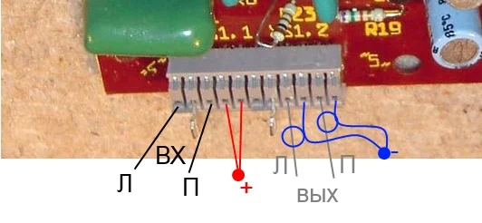 Никуда.Я по схеме не смог разобрать надпись.Я подключил 1 и 3 на каналы входа соответственно, а минус входа подключил к общему минусу(как раз там где нету контакта, 2 ножка).По делу: