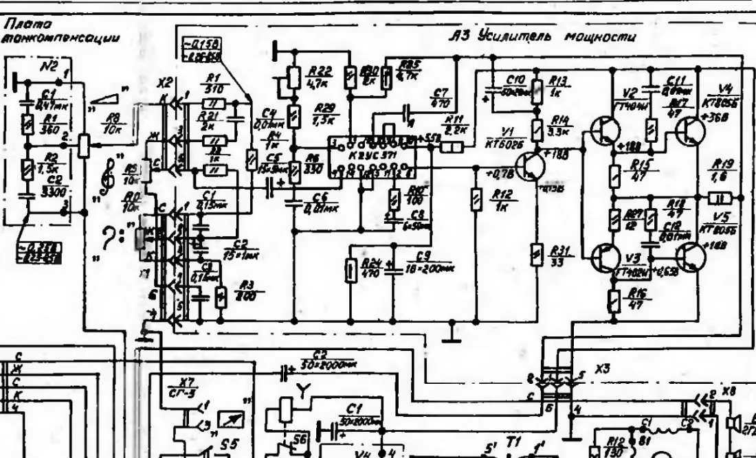 Разобрал Маяк 202, вытащил все внутренности и поставил всё на ИМС! Посмотрел на усь и удивился он на КТ805 а выходная 3 ватт! Теперь вот незнаю как его включить! Подскажите, чо для него за питание нужно и какая у него распиновка! Хочу поставить его в моно сателлит на 25 китайских ватт! А вот включать не знаю как, если можете дайте схему или распиновку включения, инфу об усилителя!
