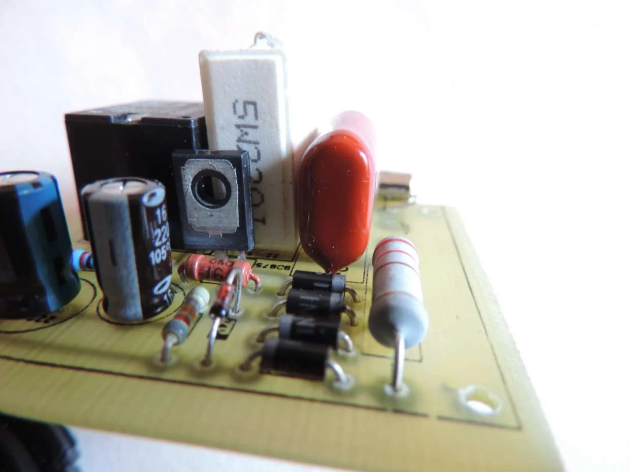 IN возле керамического конденсатора 470нФ, а OUT возле реле.