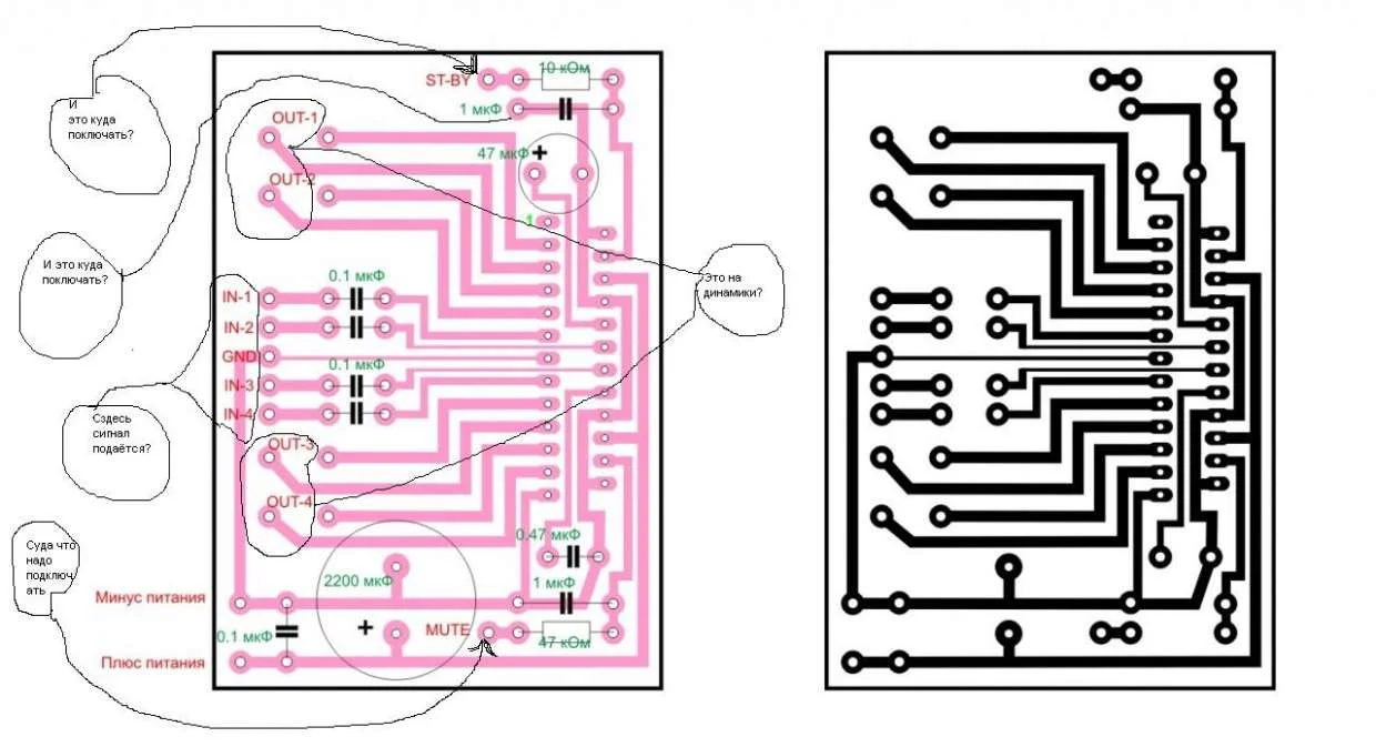 Я думаю вот так "IN-1 IN-2"-их вместе и получается это LEFT канал а "IN-3 IN-4"-их вместе и получается это Right канал. а GND это обший? ДА?)):tehnari_ru_837: