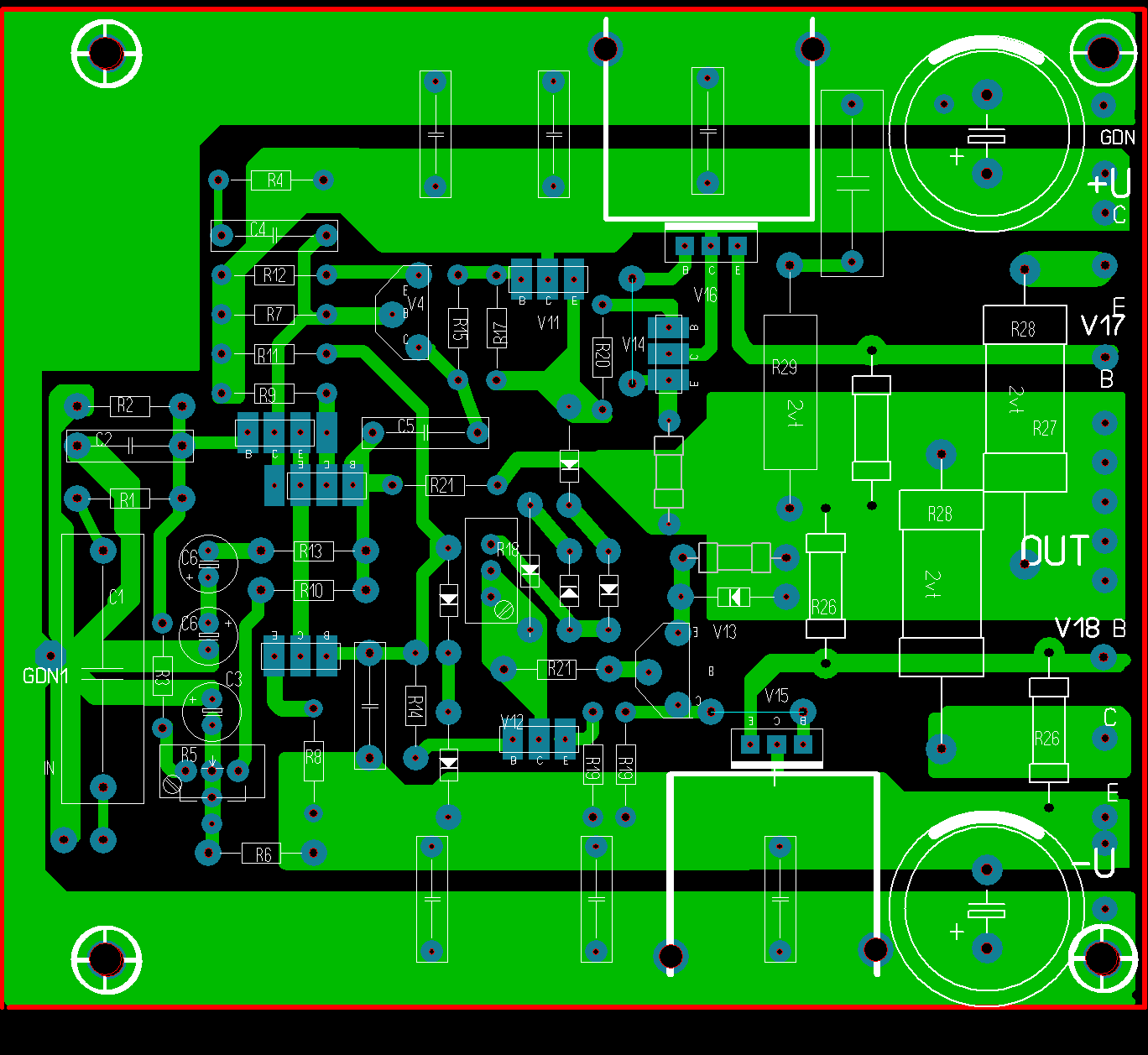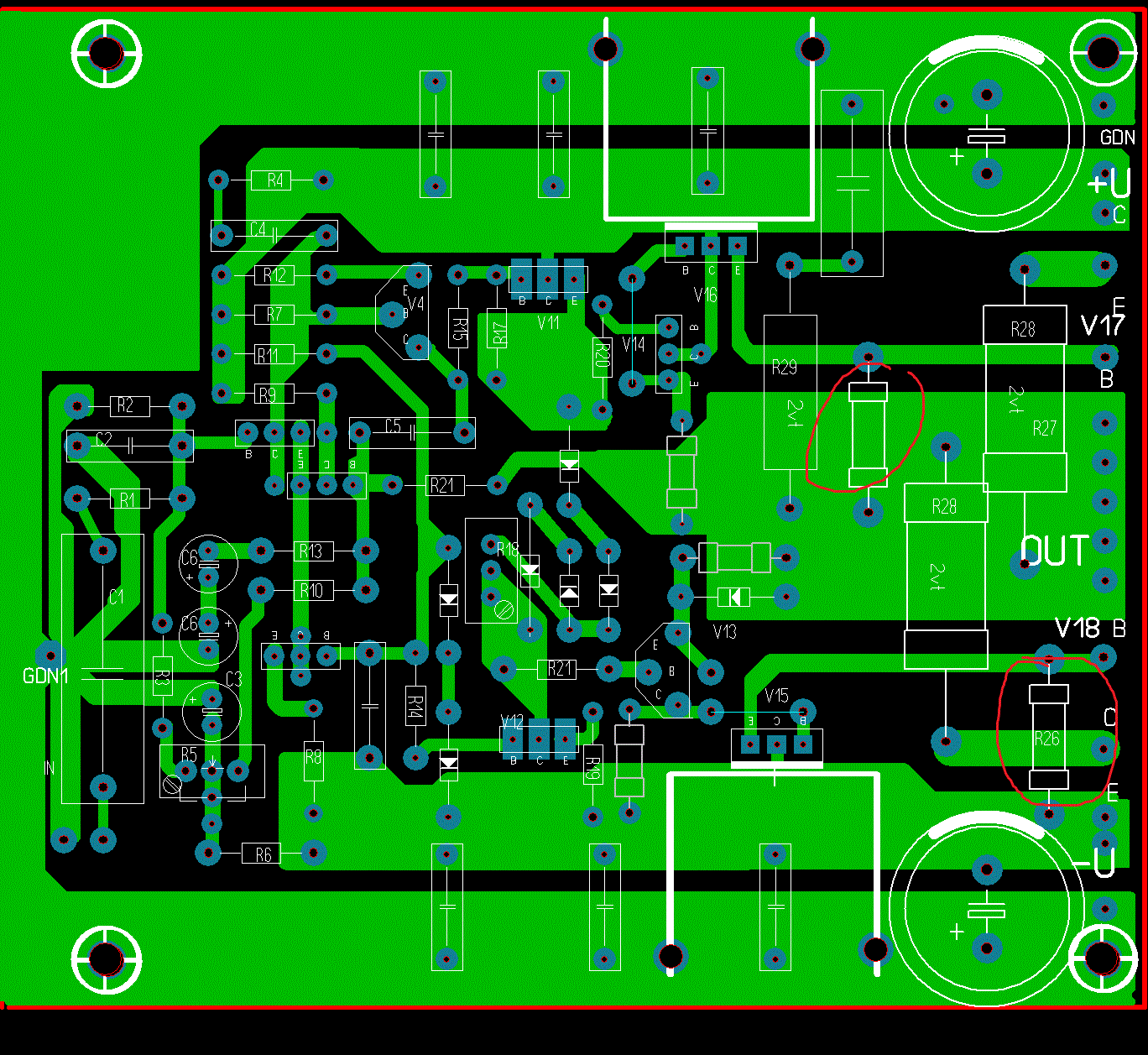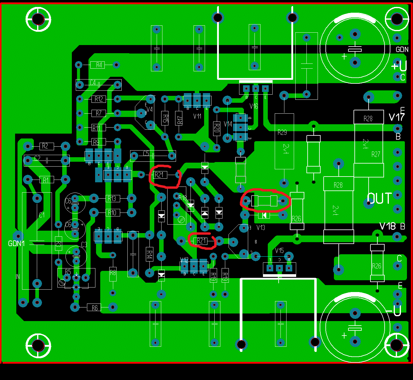М.Васильев я не пойму вот, какие именно резисторы не нужно ставить в вашей печатке, если в качестве выходников будут КТ808 ? Можете их обвести на рисунке печатки?