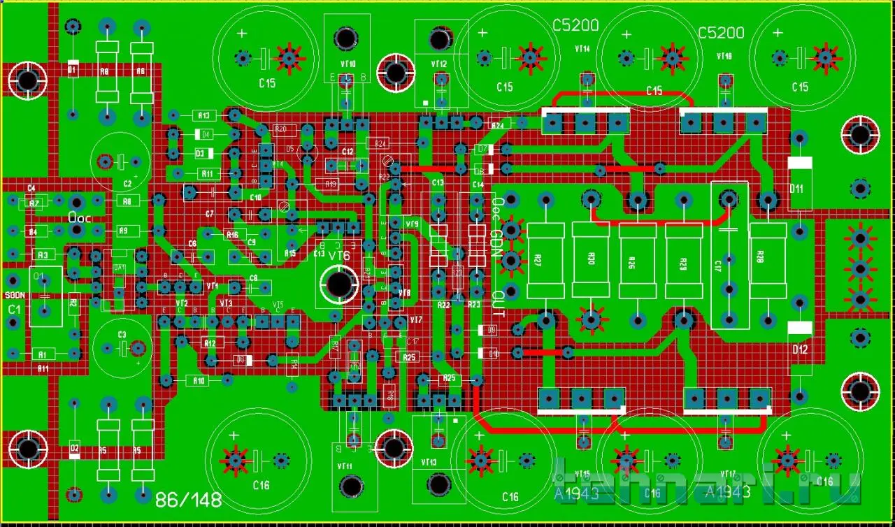 Вроде успокоился,обе оос завел на сигнальную землю.Думаю финальная версия.Плата настолько простая получилась.что даже рейсфредером легко нарисовать