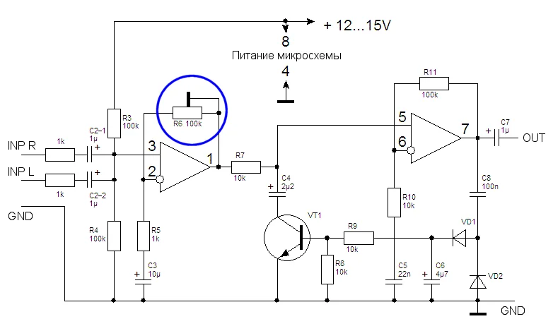 подстроичный 100 кОм, он устанавливает коэффициент усиления, отрегулируешь