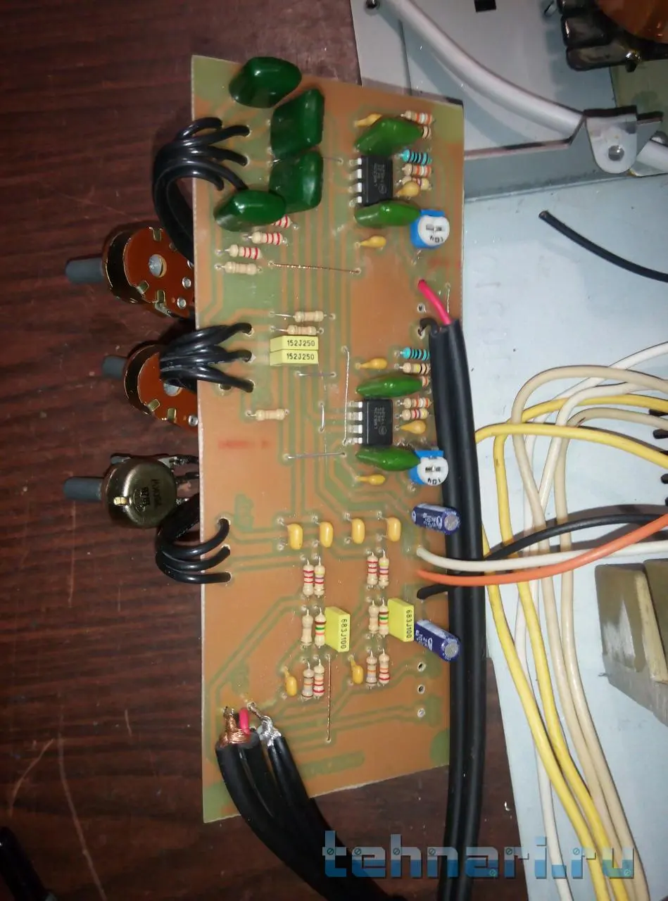 Вот по этой схеме собран,брал уже готовый собранный,есть вопрос по нему,регулятор громкости хочу поставить на выходе,есть оригинальный альпс 100ком,с отводом от середины для тон компенсации, но думаю как быть с родным по схеме рег.громкости,оставить его,типа как регулятор входного сигнала (дискретный поставить) или вовсе извлечь,но так же хочу реализовать тонкомпенсацию,но ньюанс с номиналами резисторов и конденсаторов и вопрос по его коэф.усиления если входное 200мв.сколько на выходе?