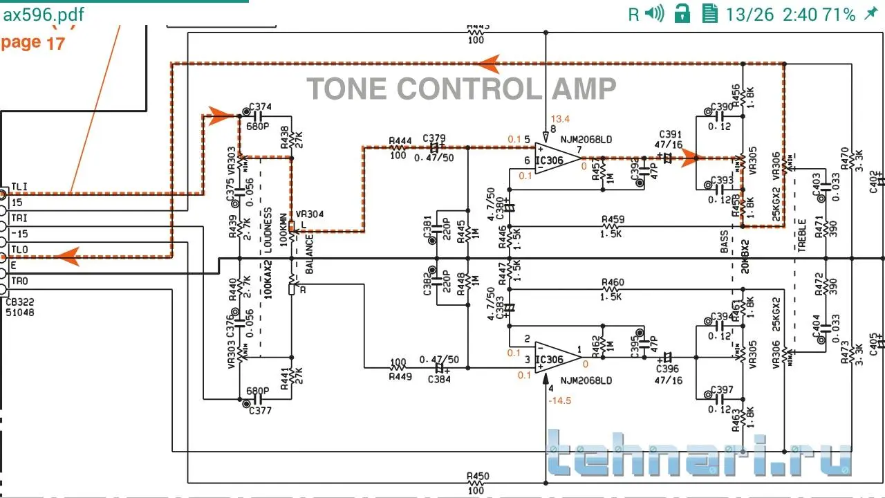 Вход сразу на r449-444 идёт, рег.громкости стоит перед ум. Перед r449-444 стоят конденсаторы 4.7мкф пленка, электролиты убрал с входа.