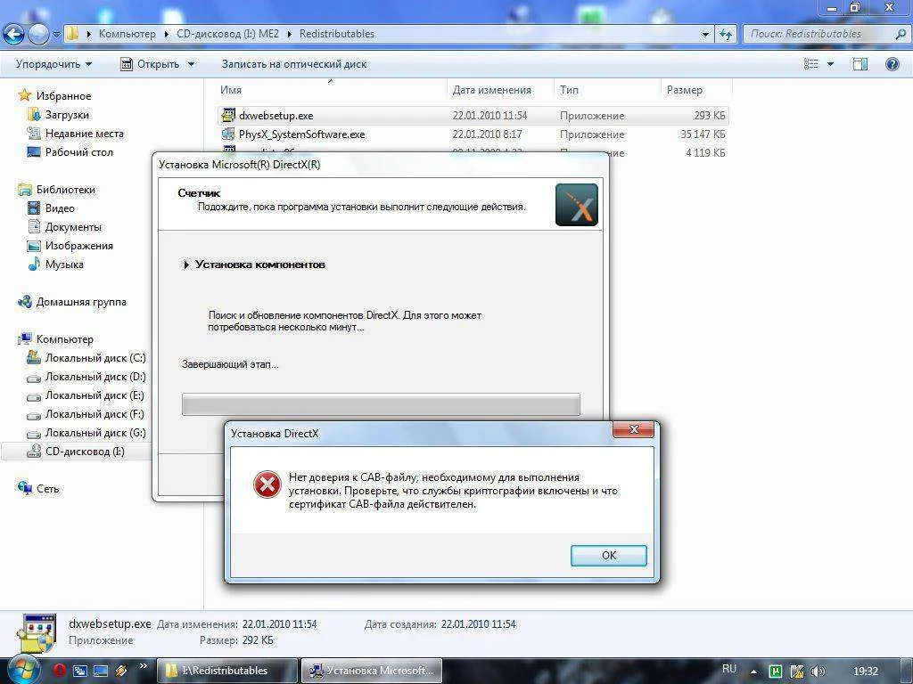 начиналось всё с установки игры. выдаёт ошибку не найден файл d3dx10_39.dll после этого пытаюсь подсунуть ему директ и на этом всё останавливается. из под админа тоже самое. Я как-то уже плюнул, но интересно всё же. да и братишка игруху требует. А директ пробовал с офф сайта дяди гейтса.Хотя система вроде сама себе все обновления ставит.