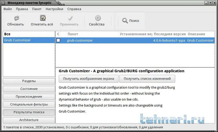 вбить в строку поиска название искомой программы, в моем случае это grub customizer