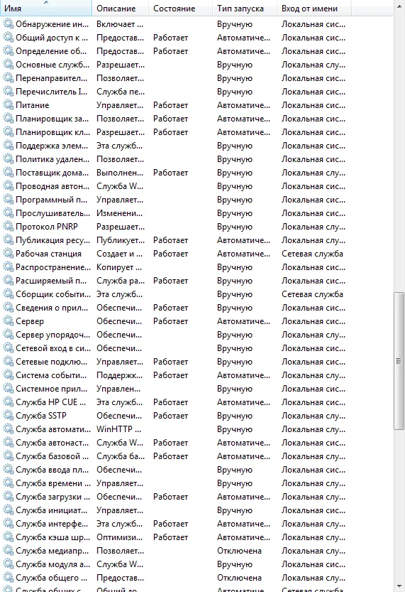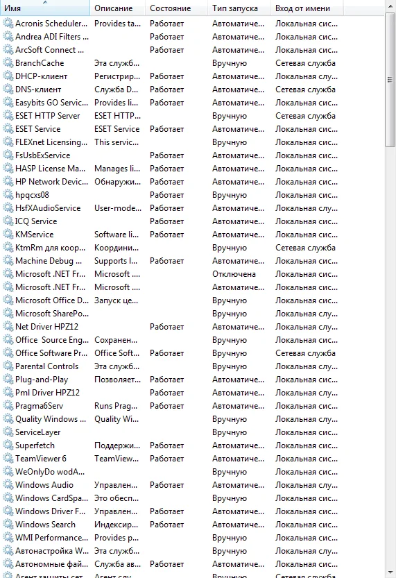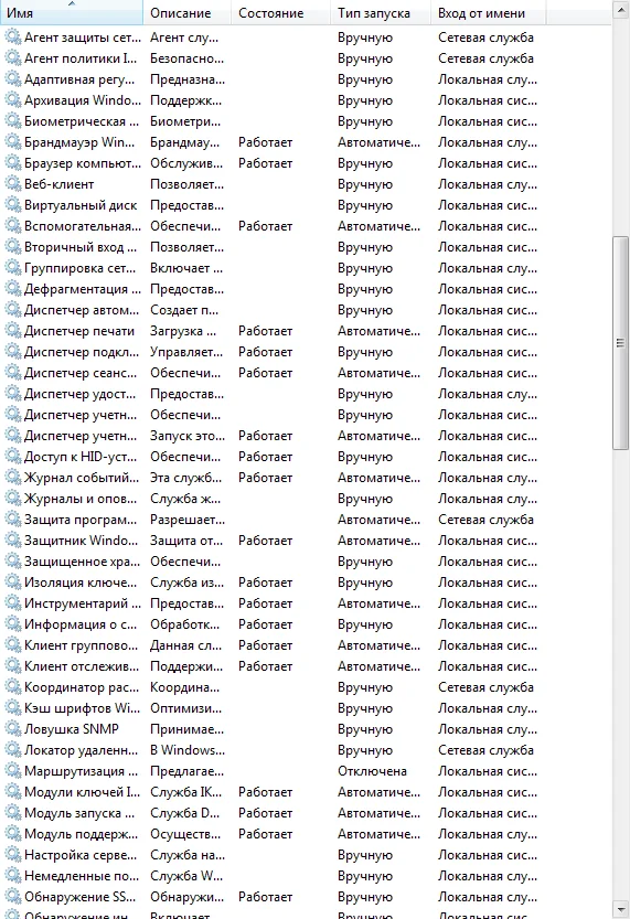 Пожалуйста, сделайте снимок служб.