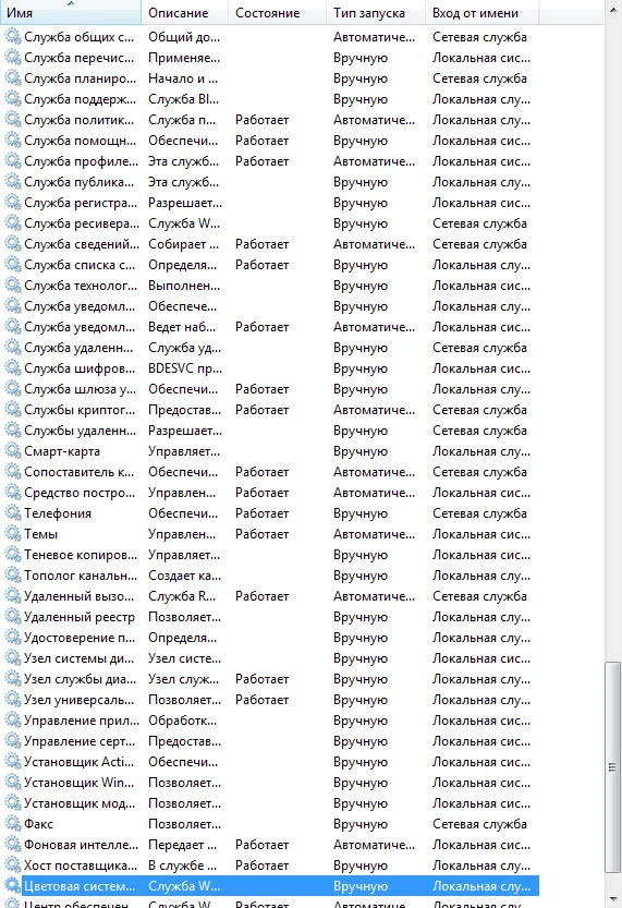 найдите нужно, и проверьте если выставлены "автоматом" и "запущены".
