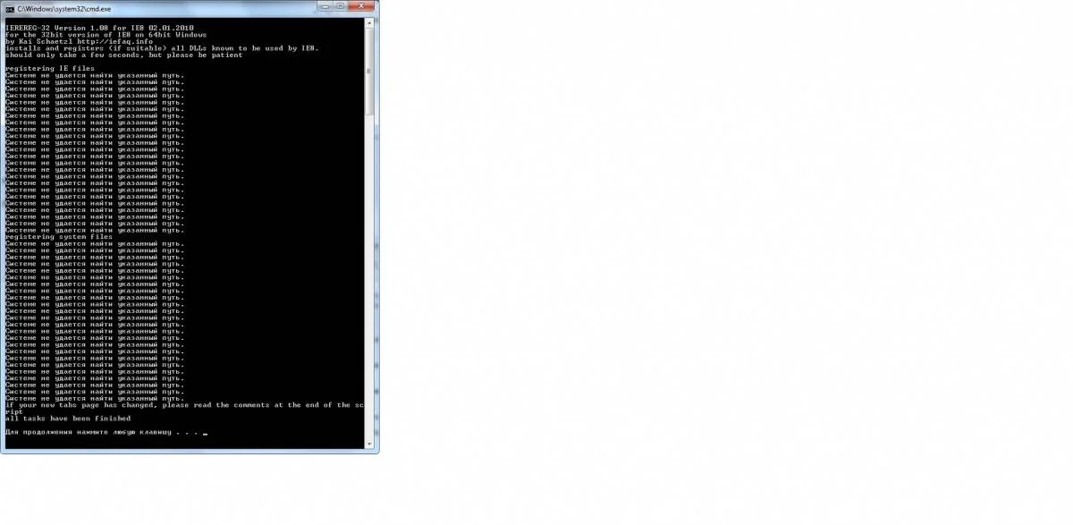 Если предыдущее действие не помогло, скачайте прикрепленный к этому сообщению архив, распакуйте и сохраните на Рабочем столе файл ie8-rereg.32on64.cmd. Запустите его от имени администратора (обязательно!), перезагрузитесь и проверьте наличие проблемы.