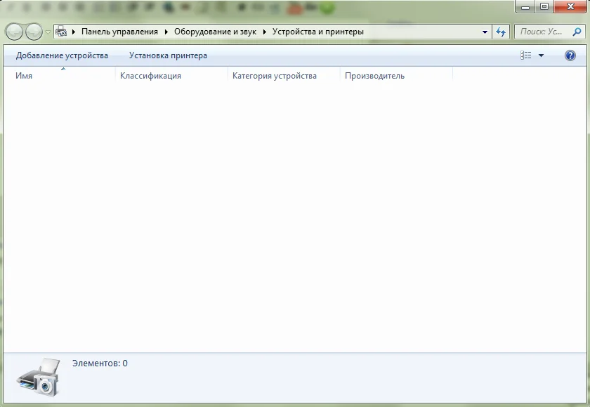Папка устройства и принтеры пуста