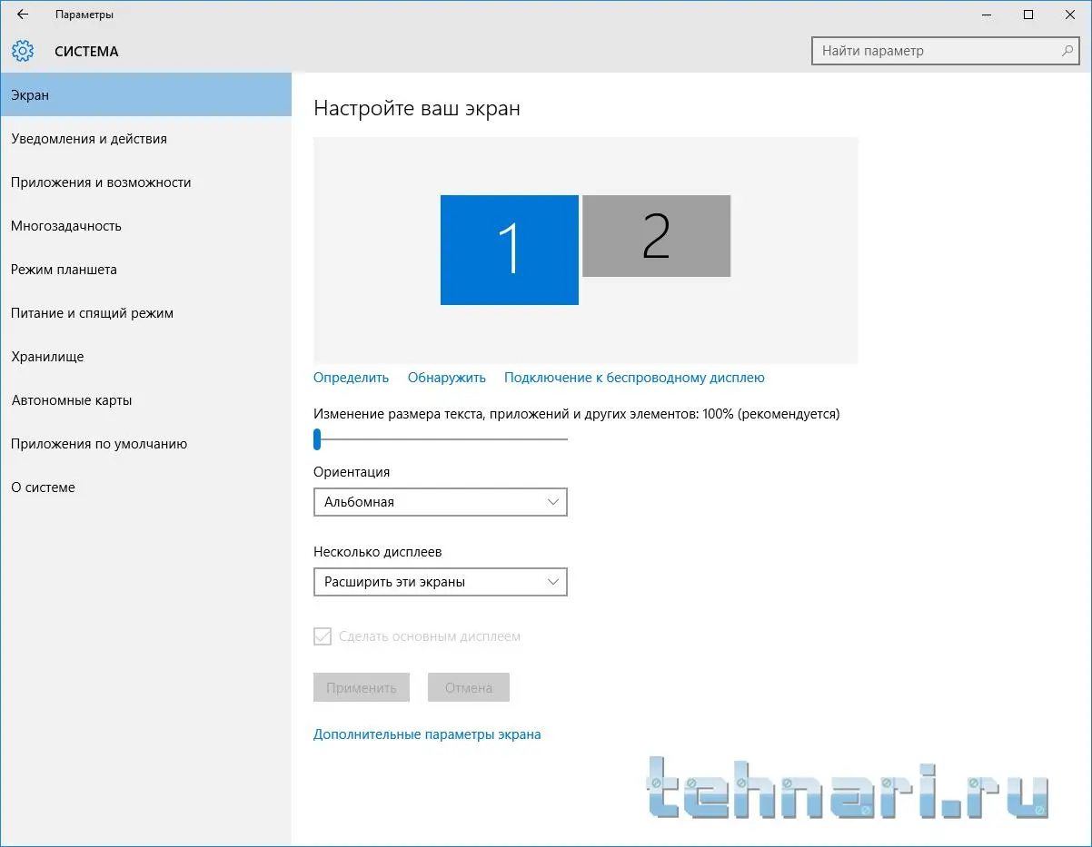 ПКМ по чистому рабочему столу, "Параметры экрана", ползунок надо переместить влево до упора.