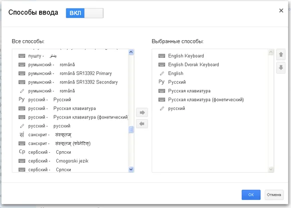 После добавления русского языка и сохранения настроек в основном меню Google появится новая кнопка.