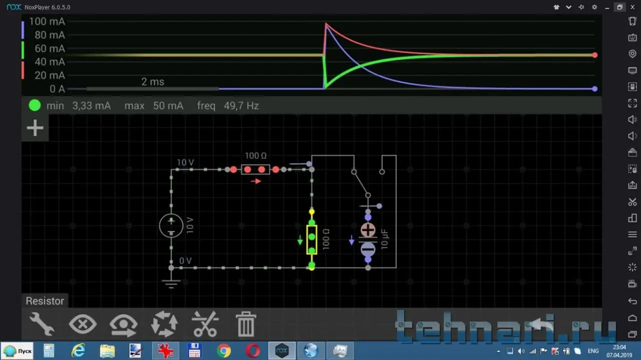 чтобы исключить дальнейшие непонятки вот скрин симулятора при подключении разряженного конденсатора, который я надеюсь расставит все точки над i