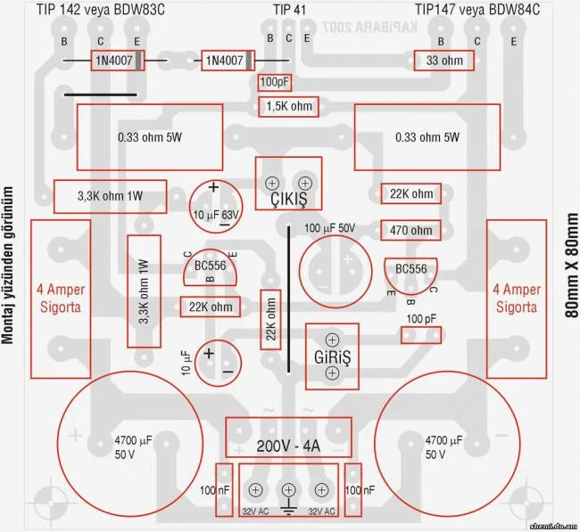 Надежность тоже вызывает сомнения, так как термостабилизация ужасная. Хотя в том виде, в котором усилитель на фото в превом посте - ее вообще нет. Диоды должны быть посажены на один радиатор с выходниками. А транзистор КУН должен иметь свой радиатор, так как при попытке посадить его на один радиатор с выходниками возникнет ПОС, в результате чего - саморазогрев и выход из строя.