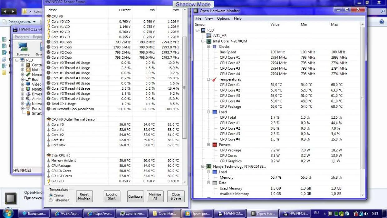 термопасту менял - результат ноль . а какой прогой можно померить напряжение ядра прцессора? мультиметром неудобно т к радиатор все загораживает а вкл без радиатора-это сразу в урну я знаю!