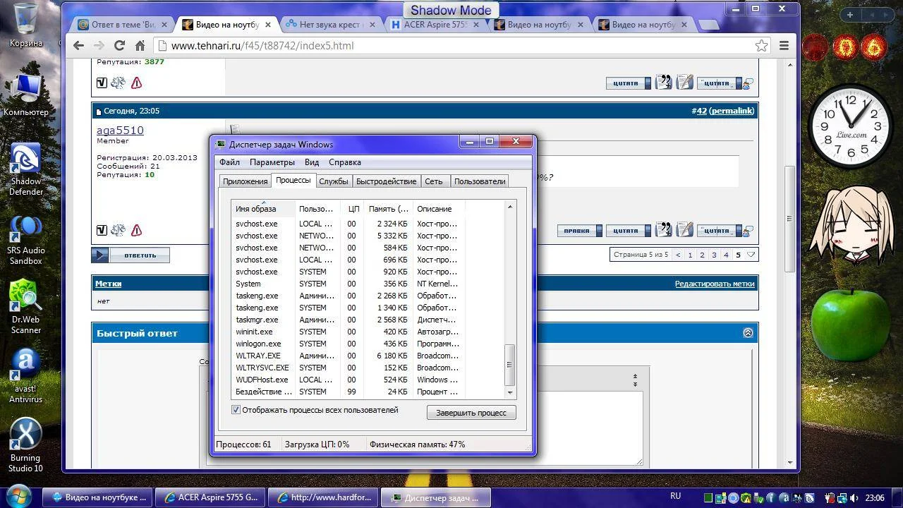 Что-то много процессов 61, обычно 40-45. Да отключите вы эти антивирусы на 30 минут и посмотрите, что будет