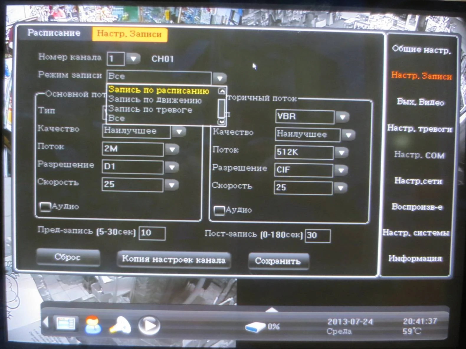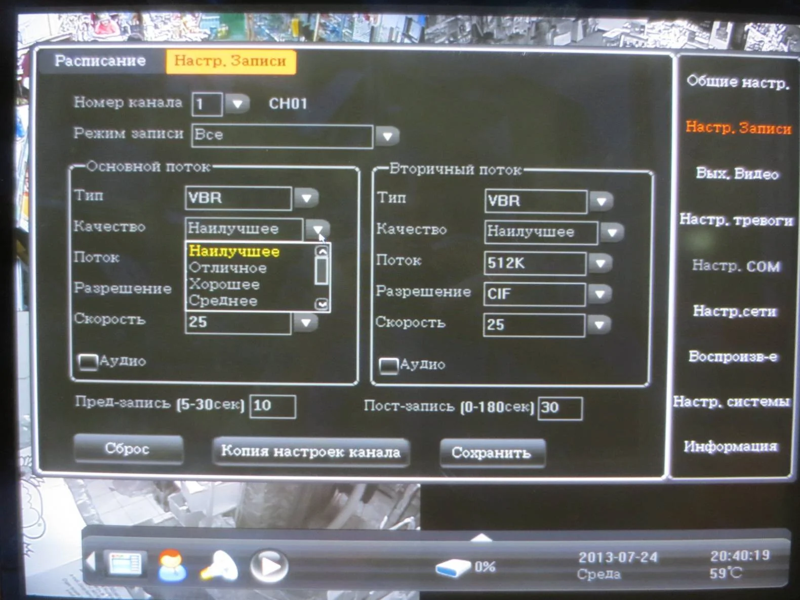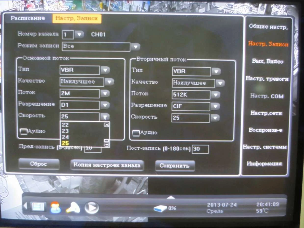 3) Когда я в пункте меню "Вторичный поток" устанавливаю "Поток" из выпадающего меню, ставлю его 1М (что видимо означает 1 мегабайт), сохраняю, выхожу из меню, потом опять захожу, а это поле как будто по стандарту может быть максимальным со значением потока 768К. Что за глюк такой может быть? Может регистратор такой впарили непонятный.