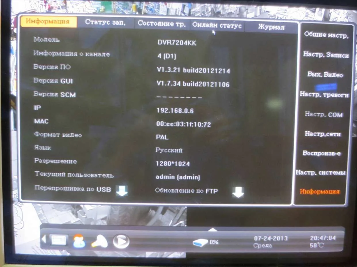 4) Главным образом посмотрите на фото (первая картинка) где я сфотографировал этот видео-регистратор, а теперь посмотрите на последнем фото - вкладка "Информация" - "модель", фото которого я сделал с экрана монитора, вижу что модель написана DVR7204KK ! В интернете я не нашёл такую модель =/ , может плохо искал?